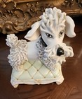 Vintage Pair Italian Ceramic On 'cushion' Poodle Figurines Ivory . Mint Cond!