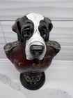 Vintage Wood Whiskey Barrel St Bernard Dog Rescue With Red Leather Straps
