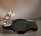 Vtg Art Deco Black Glass 3 Slot Ashtray/desk Tray By M.model - France Dog Glows