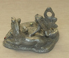 Vintage Pewter Unicorn With Red Iridescent Glass Ball Miniature Figurine