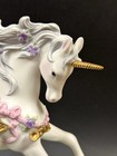 Set Of 2 Enesco Unicorn Figurine Vintage Sitting White Porcelain Gold Horn