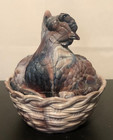 Vintage Lg Purple/amethyst Slag Glass Hen On Nest Candy Dish/basket Weave Base