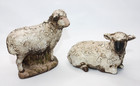 Pair Of 2 Sheep Figurines Woolly Textured Lambs Standing & Sitting