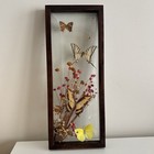Vintage Butterfly Taxidermy Glass Frame • Real Butterfly & Dried Flowers Art
