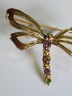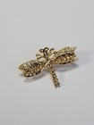 Dragonfly Lapel Pin Gold Color Metal Faux Jewels