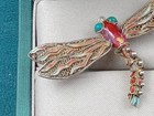 Vintage Bright Enamel Gold Tone Dragonfly Insect Brooch Pi