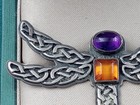 Celtic Knot Look Sterling Silver Dragonfly Pin W. Purple & Amber Color Gemstones