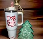 Dolly Parton /christmas Lot 2/tumbler & Tree Wood Block :holiday Collectibles.