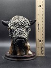Vintage American Bison Buffalo Head Bust Sculpture 5” Tall Resin Figure On Wood