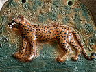 Vintage Clay Pottery Relief Leopard Small Wall Hanging Plaque With Hooks