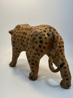 Vintage Cheetah Leopard Leather Wrapped Statue Jungle Handmade Figure 12 Inch