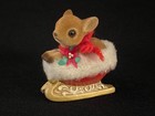 Vintage Josef Originals Flocked Deer Fawn Sleigh Christmas Ceramic Figurine