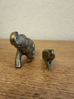 Vintage Solid Brass Elephants X 2 Mum And Baby Trunks Up Lucky Curiosity Home