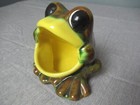 Vintage Ceramic Green Frog Soap Or Sponge Holder Flowers Decor Mouth Fly On Nose