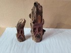 2 Hand Carved Wooden Rustic Wood Spirits Bark Gnomes Folk Art Unique Decor