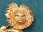 Bsk Gold Tone Costume Jewelry Lion Pin W. Oversized Mane: 1.75" X 1.25"