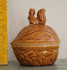 Ceramic Lidded Candy Dish Vintage Brown Squirrel On Walnut Nut