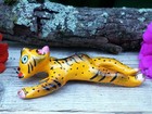 Rare Find Large 20" Hand Painted Ceramic Sprawling Tiger Floor Statue