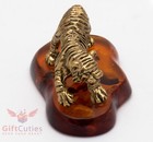 Solid Brass Amber Figurine Of Tiger Ironwork