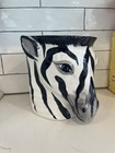 Vintage Zebra Head Ceramic Planter Vase 7.75"h Made In Italy Mid-century Mcm Vtg