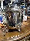Vintage Sheffield Silver Co Ice Bucket Glass Insert Tongs Footed Barware