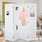 67'' H Wood Room Dividers 4 Panel Pegboard Display Folding Privacy Screens White