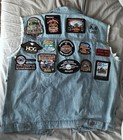 Harley-davidson Denim Vest Sleeveless Jean Jacket 27 Patches