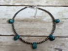 Handmade Anklet Silver Tone Gray Glass Pearls And Teal Faceted Glass Beads 9"