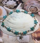 Turquoise Blue Glass Seed Beads Silver Starfish Charm Ankle Bracelet 9" Or 10"