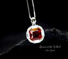 Ruby Necklace - Pigeon Blood Red Ruby Pendant - White Gold @ Sterling Silver -
