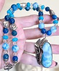 Beautiful Sterling & Hill Tribe Silver Larimar, Blue Topaz & Apatite Necklace