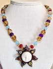 Fabulous Ornate Sterling Silver Citrine, Garnet, Amethyst Carved Sun Necklace
