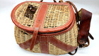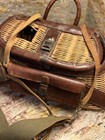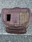 Antique Wicker Rattan Fishing Creel Basket Leather Trim & Shoulder Strap