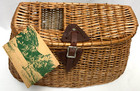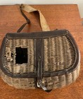 Vintage Antique Fishing Creel Basket Wicker Leather Rustic W Leather Strap