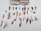 Vintage Lot Fishing Lures Bait Fly Flies Trout In Aluminum Box Tackle