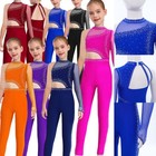 Kids Shiny Rhinestone lyrical Dance Dress Skirted Leotard Bodysuit Performance