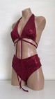 Schminke💄 Sequins Pole Dance Wear Bikini Halter Top & Sweetheart Bottoms Sequin