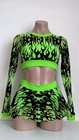 Schminke 🔥 Flame Long Sleeve Mesh Crop Top Skater Skirt Bottoms Dance Wear Uv