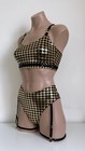 Schminke 🐕 Houndstooth Gold Silver Dance Pole-wear Suspender & Garter Polewear