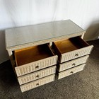 59" White Rattan 6-drawer Dresser W/metal Pulls Wood Legs Free Shipping