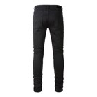 Black Light Men Jeans Stretch Slim Straight Fit Black Star Distressed Rip Denim