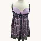 Cacique Silk & Lace Chemise Women 18/20 Black Purple Babydoll Lingerie Sleepwear