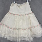 Petticoat Slip Womens 2 White Tulle Floral Embroidered Tiered Rose Trim