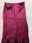 Victoria's Secret Skirt Lingerie Maroon Satin Black Lace Long Slip Medium M New