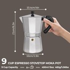 Aluminum 9 Cup 450ml Moka Pot Express Coffee Maker Stovetop Espresso Percolat...