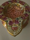 Antique Porcelain Floral Rose Heart Tea Leaf Strainer.