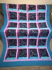 Hand Quilted Floral Lap Blanket Wall Hanging Purple Blue White Prairie Points