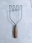 Primitive Antique 1910s Wood Handle Round Steel Potato Masher Kitchen Utensil