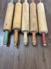 Vintage Wood Rolling Pin Lot 5 Red Green And Natural Handles Farmhouse