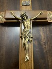 Vintage Wooden Metal Wall Cross Crucifix Holy Religious Carved Christ Brown